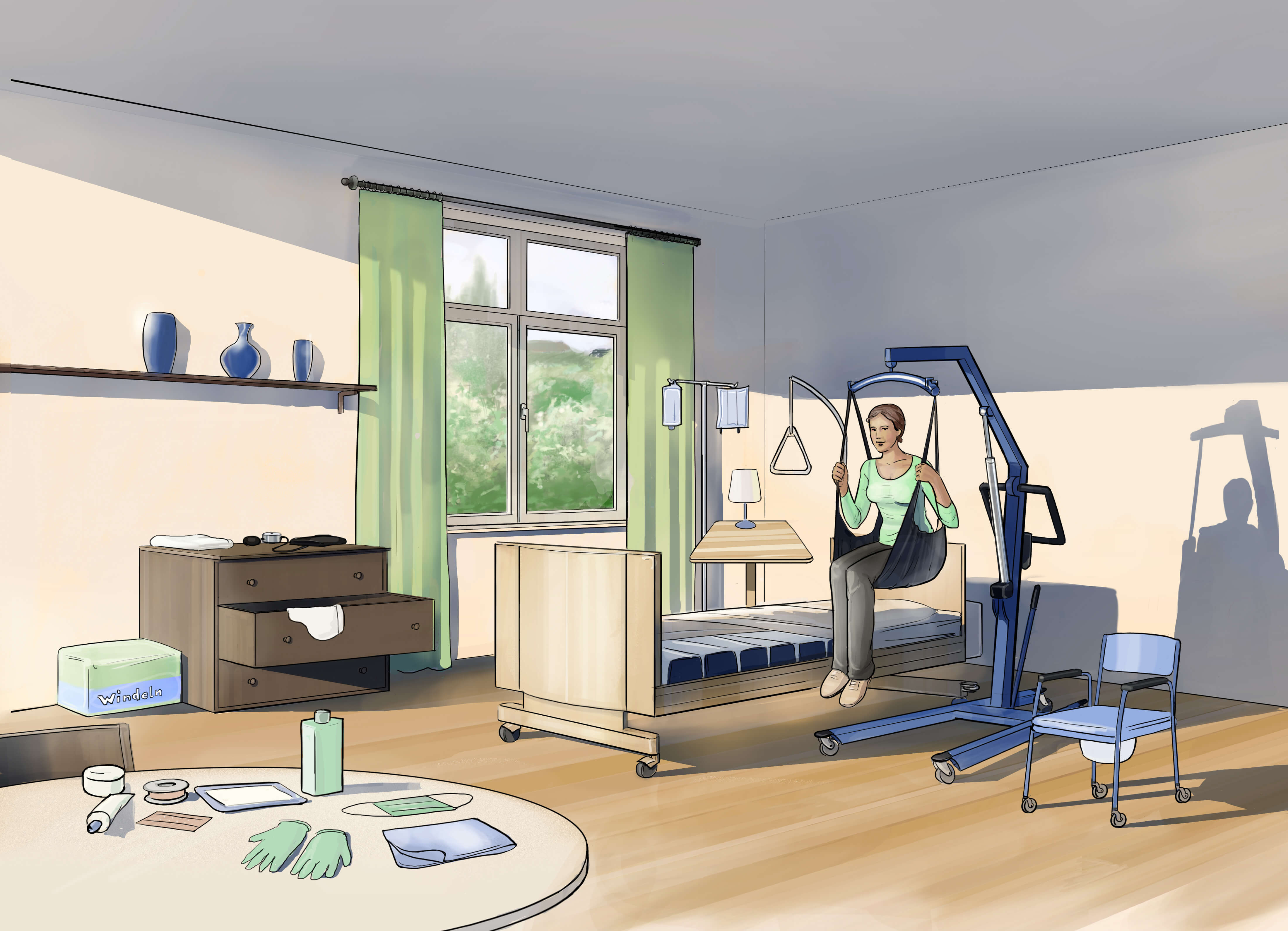 Welche Versorgungsmöglichkeiten es in der Häuslichkeit oder für unterwegs gibt, können Sie in unserer Broschüre "Wohnraumanpassung" nachlesen. Sie informiert auch über die Finanzierung mittels Fördermöglichkeiten und Zuschüssen durch die Pflegekasse für Personen mit anerkanntem Pflegegrad.